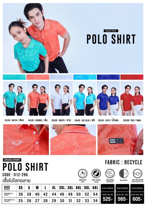 เสื้อโปโลลายไทย grand sport 012-296, 012296 ขายส่ง ราคาส่ง ราคาถูก Polo Sport Shirts Grand sport 012296 -Thailand(Wholesale)