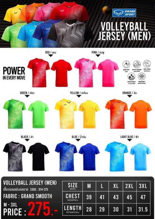 เสื้อวอลเลย์บอลชาย Grand Sport 014-375, 014375 ขายส่ง ราคาส่ง ราคาถูก Grand Sport 014-375, 014375 Volleyball Jersey -Thailand(Wholesale)